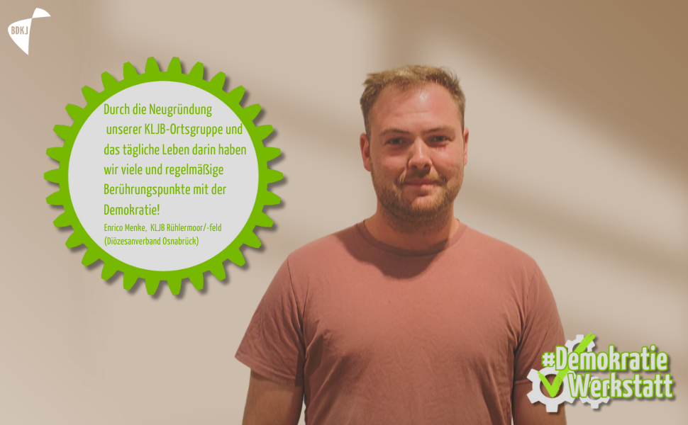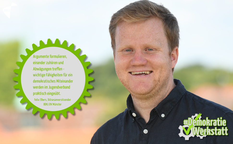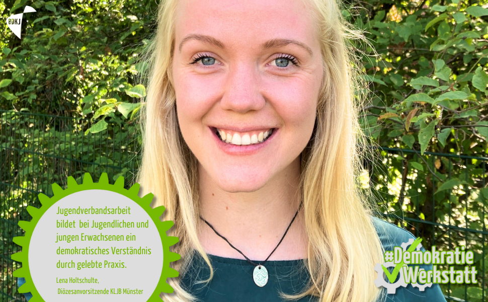 „Als junger Mensch diskutieren, andere Meinungen und Positionen anerkennen, mehrheitliche Entscheidungen treffen und demokratisch wählen: Bei der KLJB habe ich gelernt, was gelebte Demokratie bedeutet. Dadurch ist mir bewusst, von welch unschätzbarem Wert sie ist und wie sehr Jugendverbandsarbeit dazu beiträgt, bei Jugendlichen und jungen Erwachsenen ein demokratisches Verständnis durch gelebte Praxis zu bilden. Deshalb ist es mir wichtig, immer wieder für Demokratie, Vielfalt und Nächstenliebe einzustehen.“