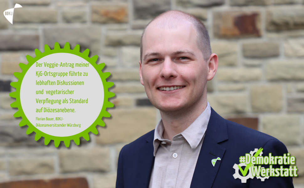 "Mit meiner KjG Ortsgruppe, in welcher ich ehrenamtlich aktiv gewesen bin, haben wir einen Antrag zur vegetarischen Verpflegung auf diözesanebene des Jugendverbandes eingebracht.